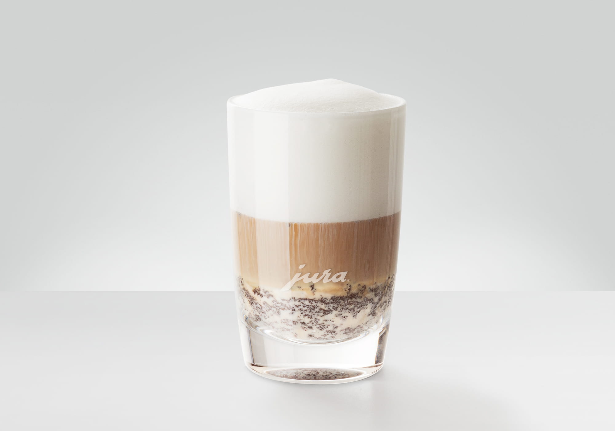 • Latte macchiato (3 sek. piens, 12 sek. piena putas, 40 ml kafijas)