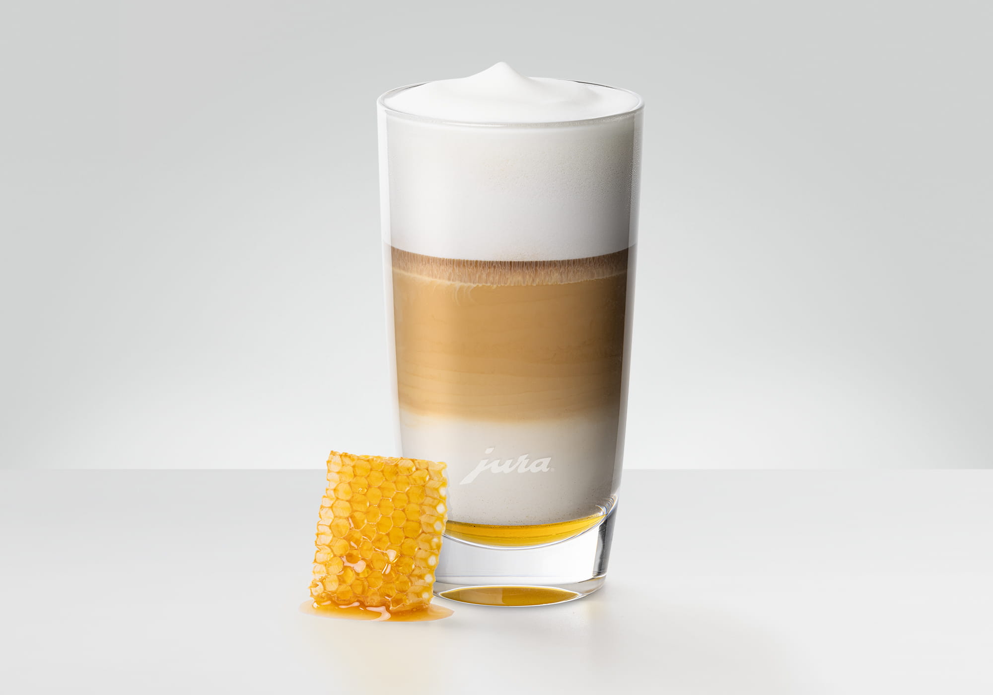 • Paņemiet latte macchiato glāzi un ielieciet tajā medu.