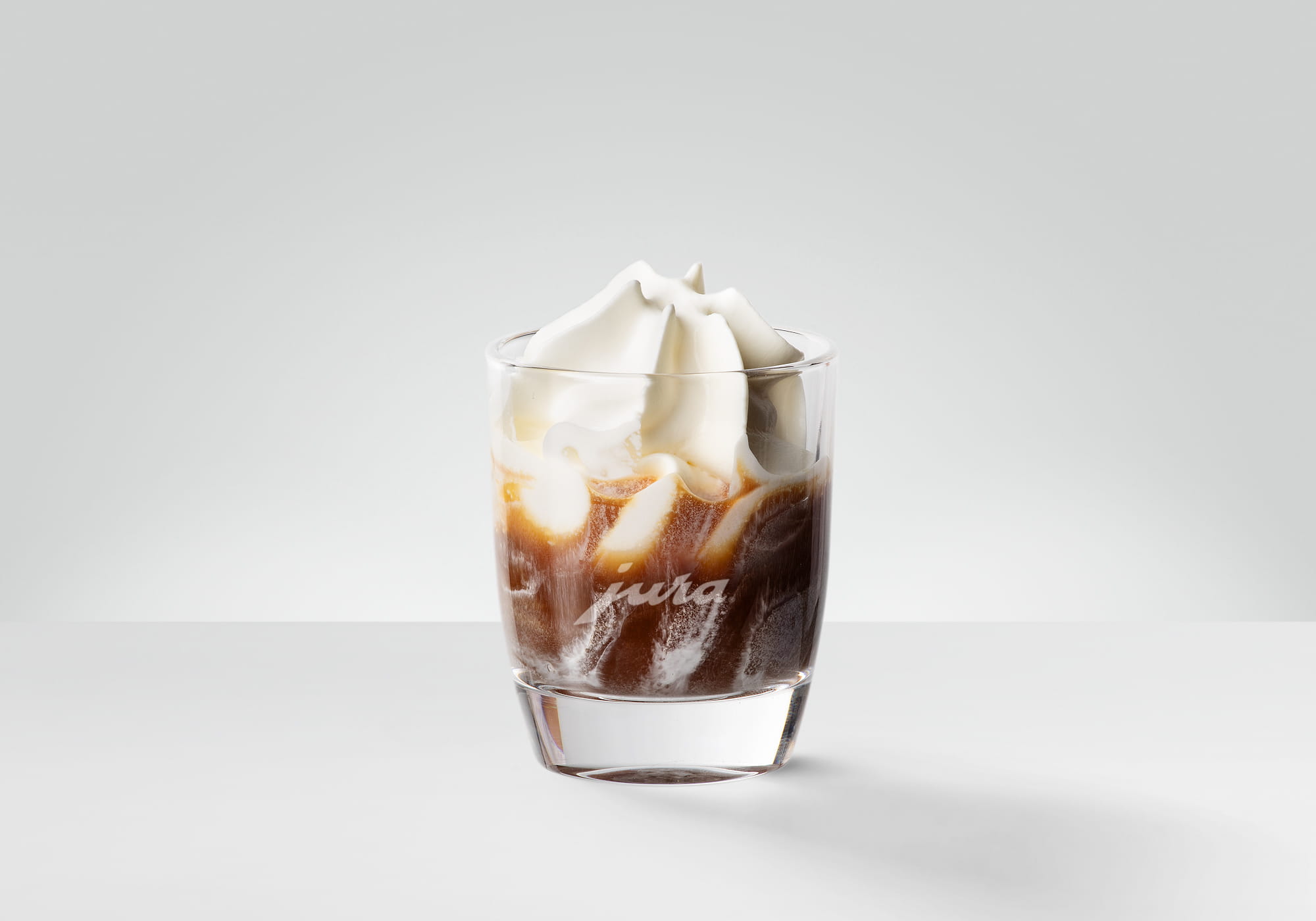 • Взбейте сливки, как обычно, и наполовину заполните ими стакан для эспрессо.