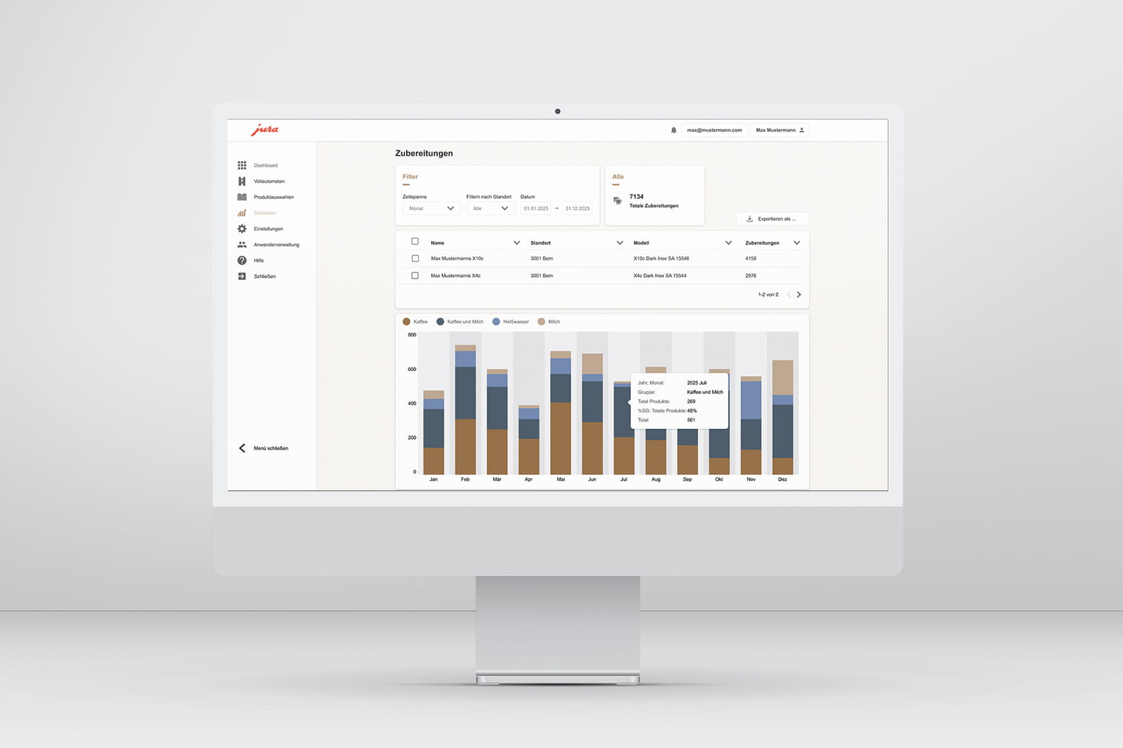 Устройство JURA Pocket Pilot 3.0 напрямую использует телеметрические данные профессиональных автоматических кофемашин в режиме реального времени. Это позволяет быть в курсе всего — от статуса кофемашины и оборота до указаний по обслуживанию и требуемых действий. Благодаря структурированному личному кабинету и наглядной статистике вы можете эффективно принимать решения на основе имеющихся данных. Указания по техническому обслуживанию помогут вам гарантировать бесперебойный процесс эксплуатации. Вы можете легко настраивать цены, кофейные напитки и рецепты напрямую через личный кабинет. При необходимости вы можете экспортировать данные об использовании — в обобщенном виде или отдельно по конкретным автоматическим кофемашинам или местоположениям. Pocket Pilot 3.0 включает в себя пять различных режимов и, таким образом, представляет собой идеальное и гибкое решение для многих видов деловой среды